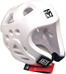 WT HEAD GEAR Taekwondo head gear for official competitions. Velcro band just below the chin for fastening. Composition: Molded foam dipped in color varnish. Color: Blue, Red & White Size: XS-XL
