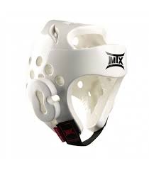 WT HEAD GEAR Taekwondo head gear for official competitions. Velcro band just below the chin for fastening. Composition: Molded foam dipped in color varnish. Color: Blue, Red & White Size: XS-XL